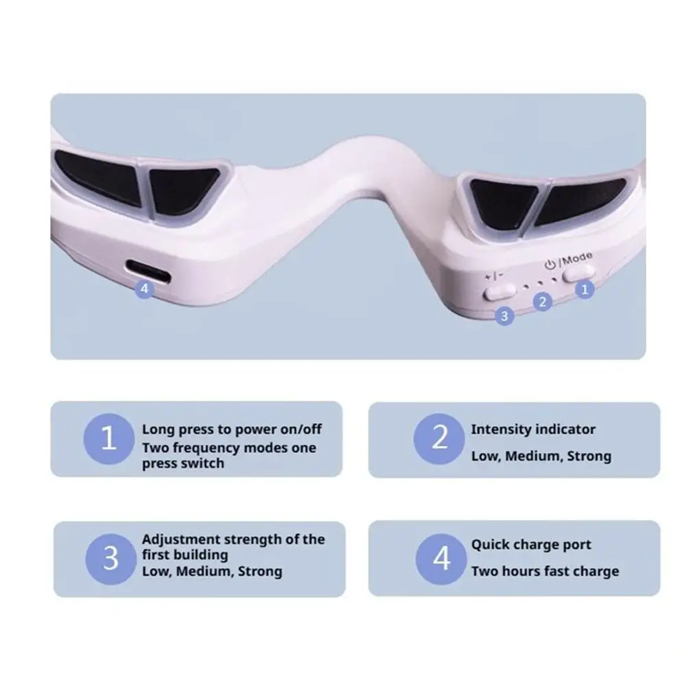 Masaje Biónico de Precisión: Con múltiples niveles de intensidad, sus nodos de masaje imitan el suave tecleo de los dedos humanos, aliviando la tensión y la sequedad ocular al instante.